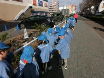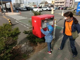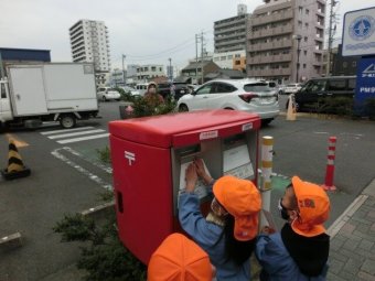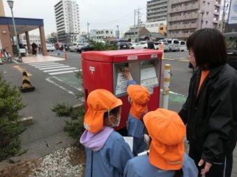 お友だちと手をつなぎ、ポストまで歩き、投函しました!