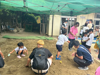大好きなお家の人と一緒に各クラス、触れ合い遊びをしたり、ゲームをしたり…と楽しい時間を過ごしました。 とっても嬉しそうな子どもたちの笑顔がいっぱいでした。 今年は、砂場でのスーパボール探しが復活!大盛り上がりでした。 イベント後も、砂場ではスーパーボール探しをする子どもたちで賑わっています。