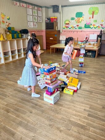 この春卒園した子たちが幼稚園に卒園アルバムを受け取りに来る日です。各クラスで少し話をして、ゲームを楽しみ、最後に映画を観ました。 少し大きくなったみんなと、久しぶりに会って話ができて、とっても嬉しかったです。子ども同士も久しぶりとは思えないほど、おしゃべりを楽しんでいました。 また、いつでも幼稚園に遊びに来てね。