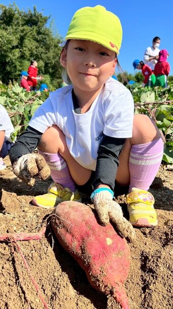 虫にびっくりしながらもみんな頑張って掘りました。大きさも形も違って面白かったね。その後はお弁当を食べて、遊具で遊んで来ました。