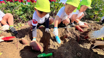 10月の園生活 年長組 いもほり遠足・年中組 園外保育