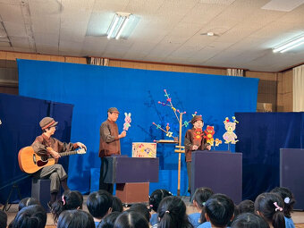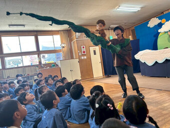 幼稚園で、むすび座さんによる人形劇を観ました。