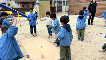 1月の園生活 コマのおじさん実演
